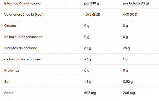 Maltodextrina, agua, fructosa, sal, acidulante (ácido láctico), citrato de sodio, conservante (sorbato de potasio), aroma natural de cítricos.
